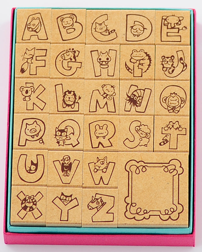 アルファベットひとつひとつにデコレーションされた文字スタンプセットです。