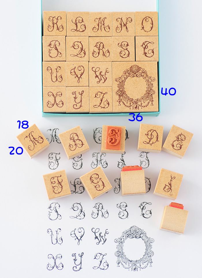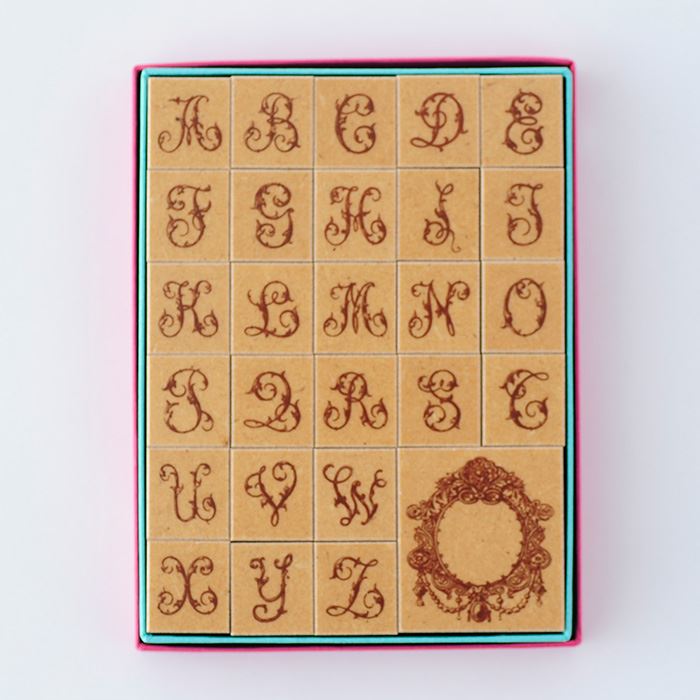 アルファベットひとつひとつにデコレーションされた文字スタンプセットのシリーズです。