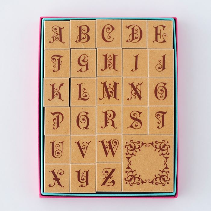 アルファベットひとつひとつにデコレーションされた文字スタンプセットのシリーズです。