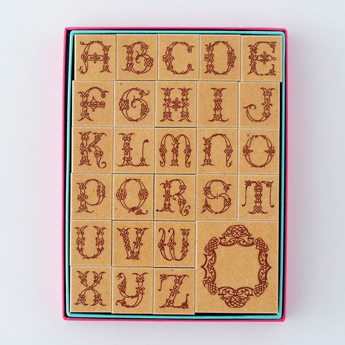 アルファベットひとつひとつにデコレーションされた文字スタンプセットのシリーズです。