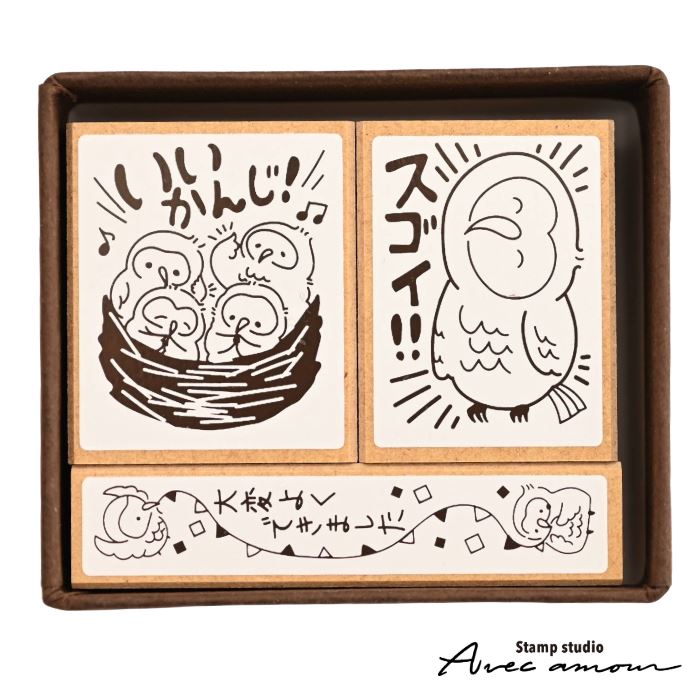 KIH-02 ごほうびスタンプ3個セット -ふくろうファミリーの評価印-